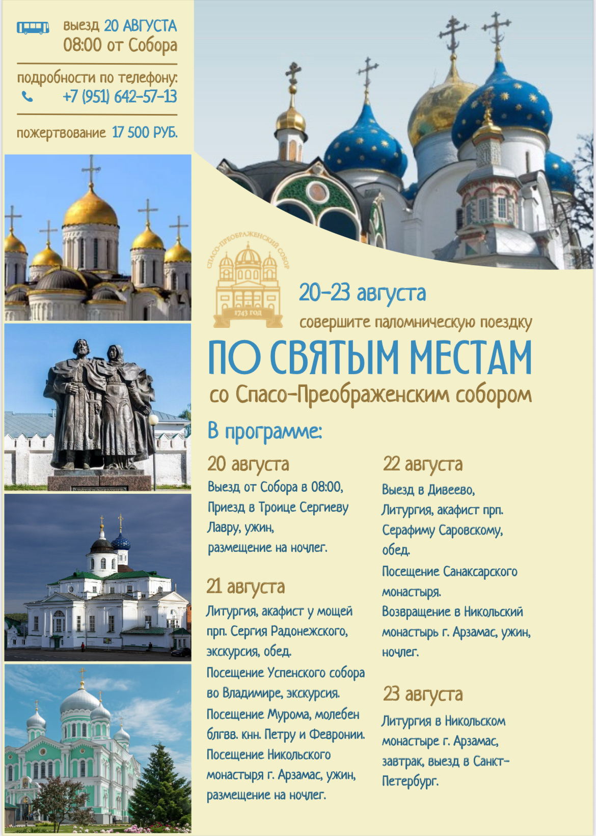 Выезжаем 20 августа в 8:00 от Спасо-Преображенского собора 🚍